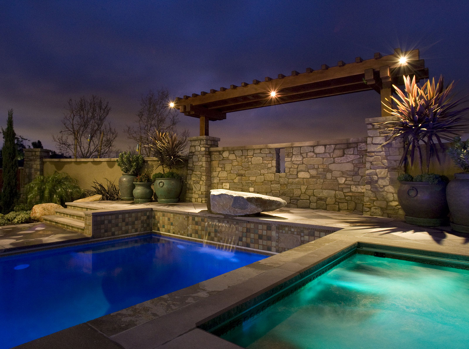 Hardscape finishes were carefully selected in conjunction with the architect and interior designer to be true to the style, yet maintenance free. Plantings evoke the natural canyon setting and were designed with year round color and interest in mind, utilizing a mix of native and perennial plants.